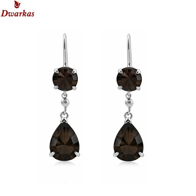 ต่างหูอินเทรนด์สำหรับผู้หญิง ดีไซน์หรูหรา เงินแท้ 925 ประดับควอตซ์สโมคกี้ ซีซี ต่างหูพลอยหลากชนิด ของขวัญสำหรับงานฉลองครบรอบ