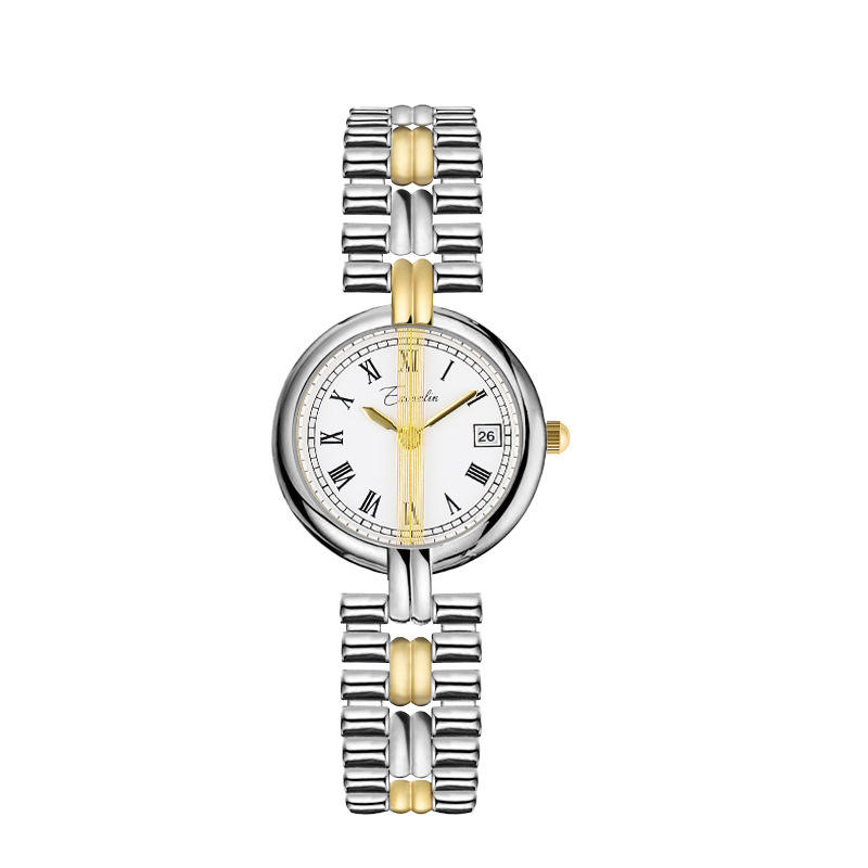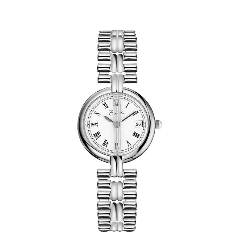 นาฬิกาผู้หญิงหรูหราพร้อมหน้าปัดกลมสไตล์วินเทจและสายเหล็กธรรมดา