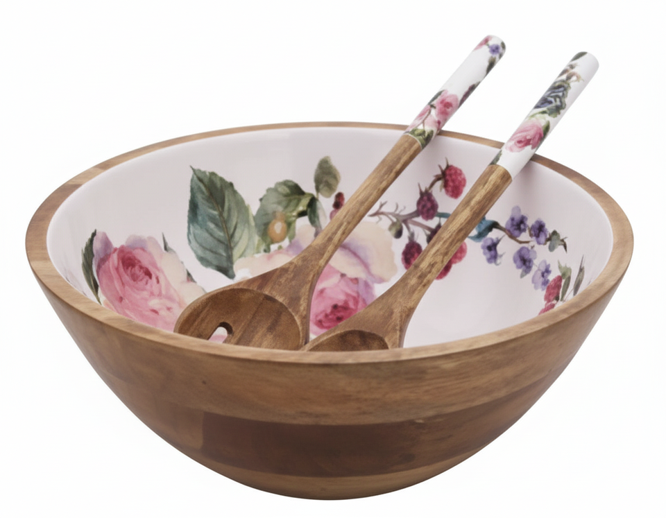 ชามไม้หรูหราเป็นมิตรกับสิ่งแวดล้อม พร้อมเคลือบภายในแบบเคลือบเงา และช้อนเสิร์ฟ สำหรับงานปาร์ตี้และใช้ในบ้าน
