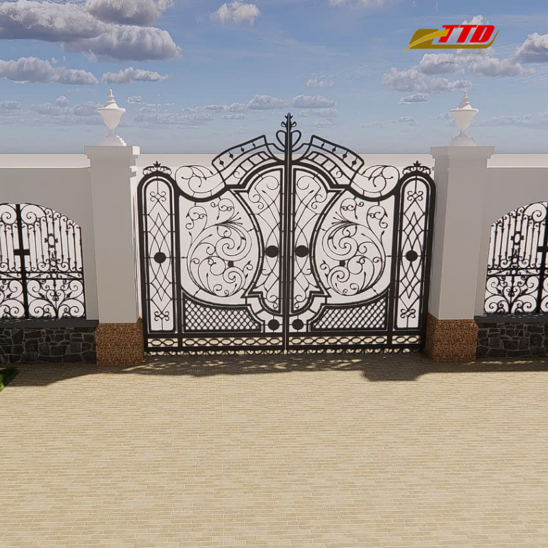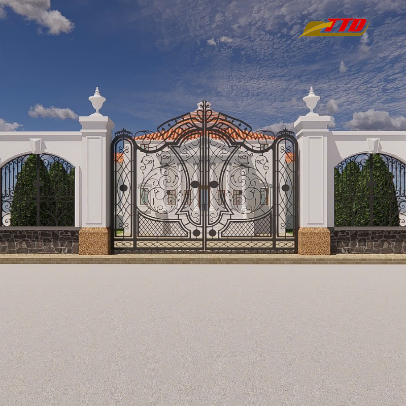 ประตูเหล็กดัดที่หรูหราสำหรับบ้านที่ผสมผสานการออกแบบที่ไร้กาลเวลาการรักษาความปลอดภัยที่แข็งแกร่งและความหรูหราที่ดึงดูดใจสำหรับการใช้ชีวิตที่ทันสมัย