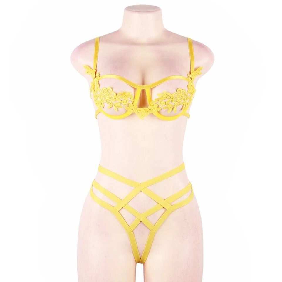 ชุดเสื้อชั้นในปักลายบรามีโครงสีเหลืองสง่างาม L-XL ขนาด