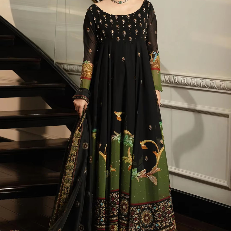 ชุดสูทผ้าฝ้ายปักลายสำหรับสนามหญ้า100% 3ชิ้นชุดเดรสยาวผ้า Dupatta กว้างพิมพ์ลายสีพื้นสำหรับเทศกาลฤดูร้อน