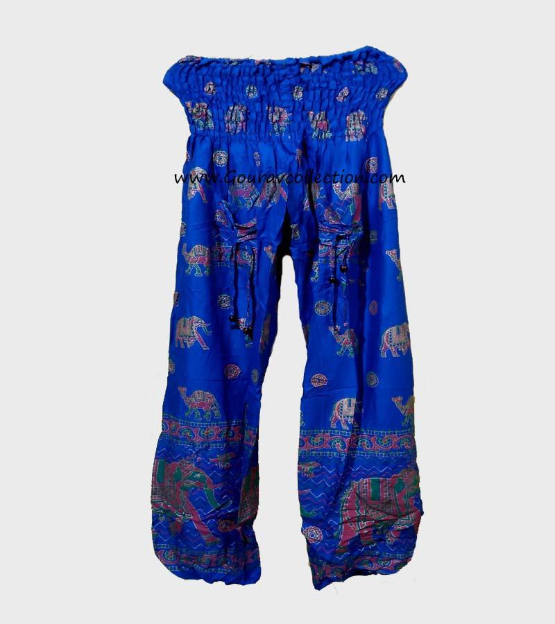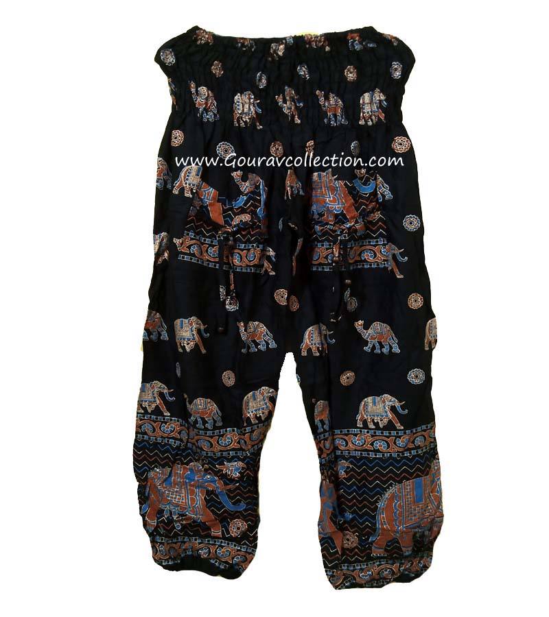 กางเกงฮาเร็มผู้หญิงผ้าเรยอนพิมพ์ลายสีทองรูปช้างสไตล์ฮิปปี้โบฮีเมียนดีไซน์ฮิปปี้สำหรับ WearGC-AP-334โยคะและเลานจ์