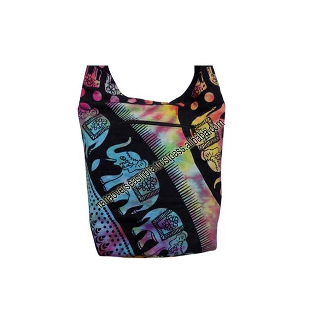 กระเป๋าสะพายไหล่ผ้าคอตตอนพิมพ์ลายช้างพร้อมสายคาดยาวสำหรับการตั้งแคมป์สำนักงานการเดินทางและช้อปปิ้ง