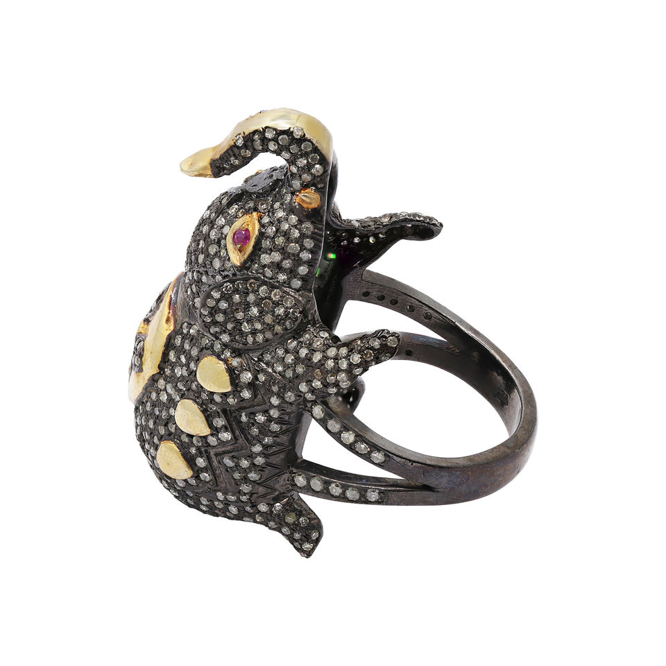แหวนหมั้นแบบวินเทจทำด้วยมือคุณภาพสูง925เงินชุบทองช้างเงินทับทิมและเพชรสำหรับงานแต่งงานหรืองานเลี้ยง
