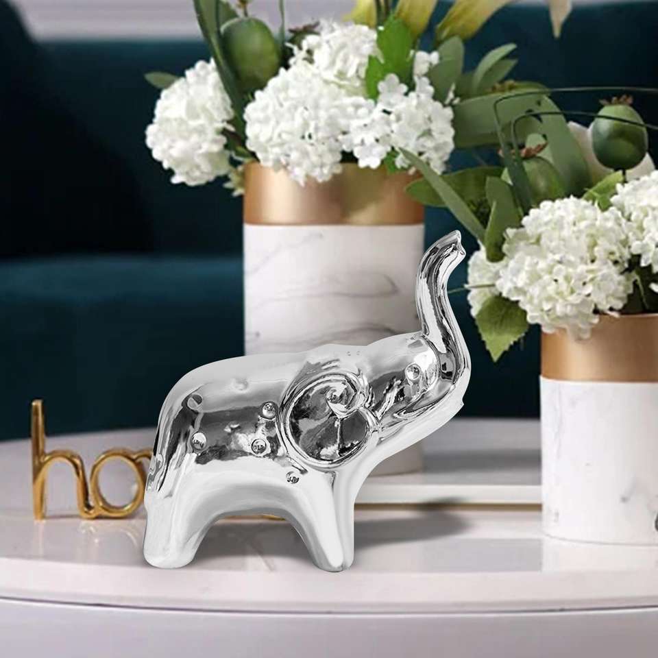 รูปปั้นช้างขนาดเล็กประดับด้วยนิกเกิลชุบเงินรูปช้างประดับโต๊ะด้านข้างของตกแต่งวัตถุประดับบ้าน