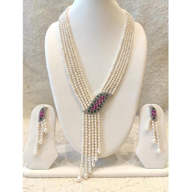 ต่างหูชุดมุกเทียมประดับเพชร CZ ชุบเงินคุณภาพพรีเมียม ดีไซน์ยาวหลายชั้น เหมาะสำหรับงานหมั้น งานแต่งงาน และงานเลี้ยง ทันสมัย