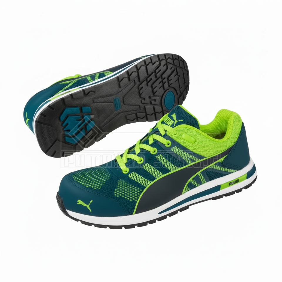 ยกระดับรองเท้าเซฟตี้ถักต่ำสีเขียว