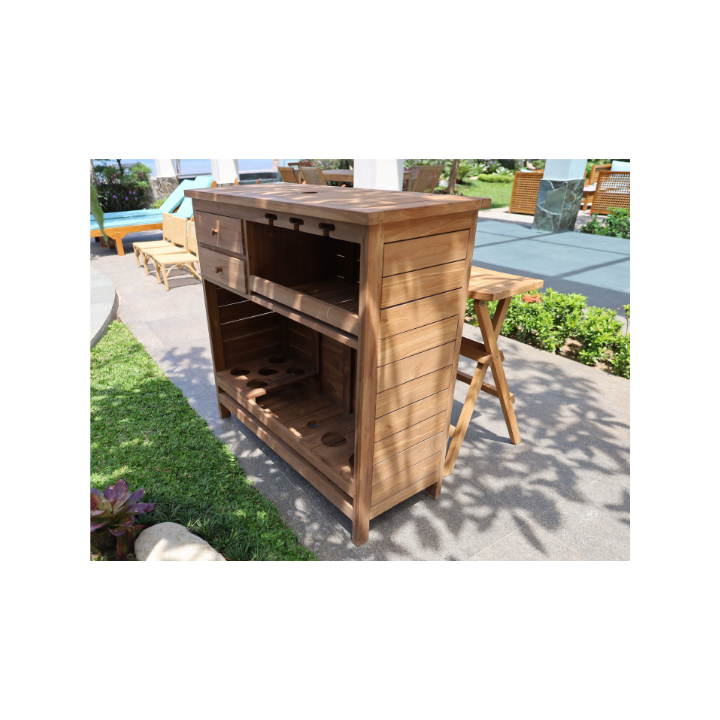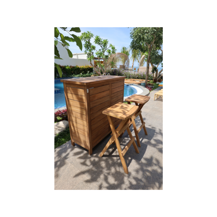 ยกระดับการสังสรรค์กลางแจ้งด้วยชุดบาร์ตาฮิติ ผลิตจากไม้สักขัดเงาอย่างดี โดดเด่นด้วยดีไซน์ทันสมัยและสีธรรมชาติที่เข้มข้น