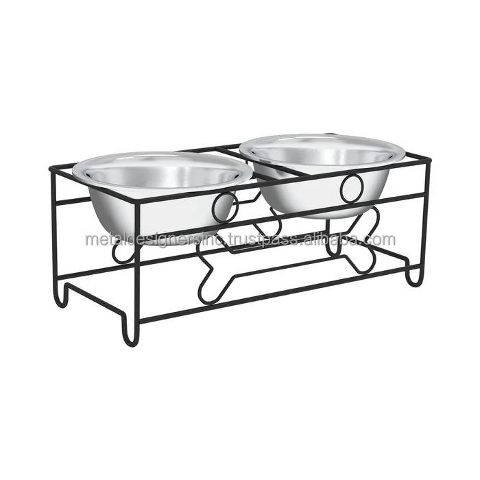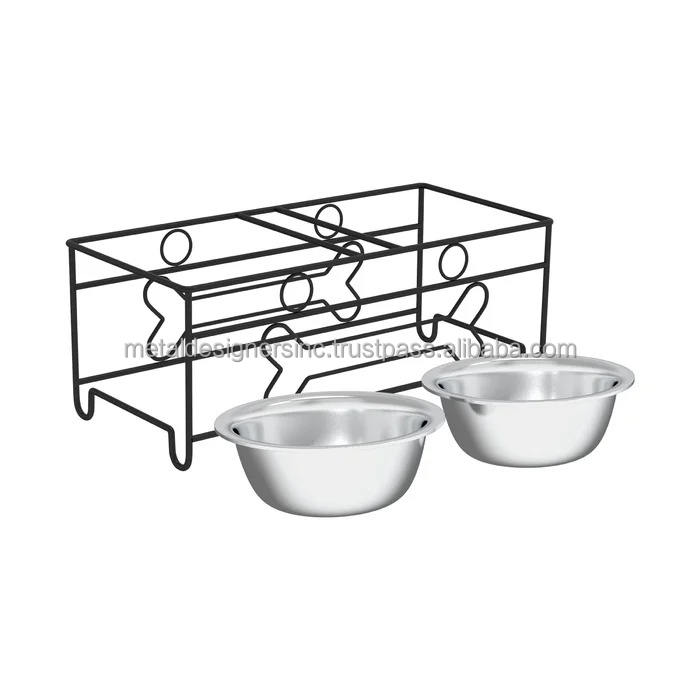 Elevated Double Diner Mid Bone Design Bowls Stand Iron Wire Black Stainless Steel for Cats and Dogs Pets Feeding