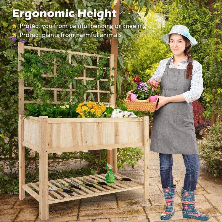 กล่องปลูกไม้สูงพร้อมระแนงไม้รั้วและประตูสำหรับสวนยกสูง
