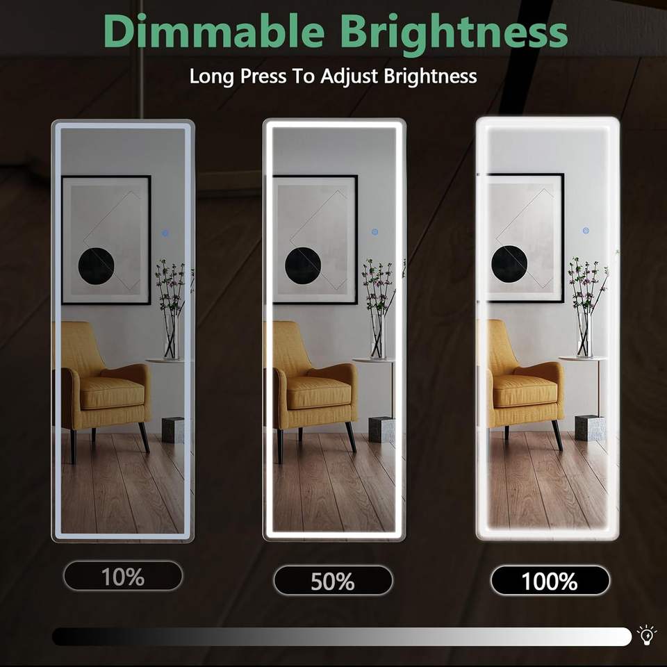 กระจกปรับระดับได้ Elevon ขนาดเต็มตัว 64x21 นิ้ว พร้อมไฟ LED ปรับความสว่างได้ด้วยสวิตช์แบบสัมผัส ดีไซน์ทันสมัย ตั้งพื้นได้ เหมาะสำหรับใช้ในบ้าน