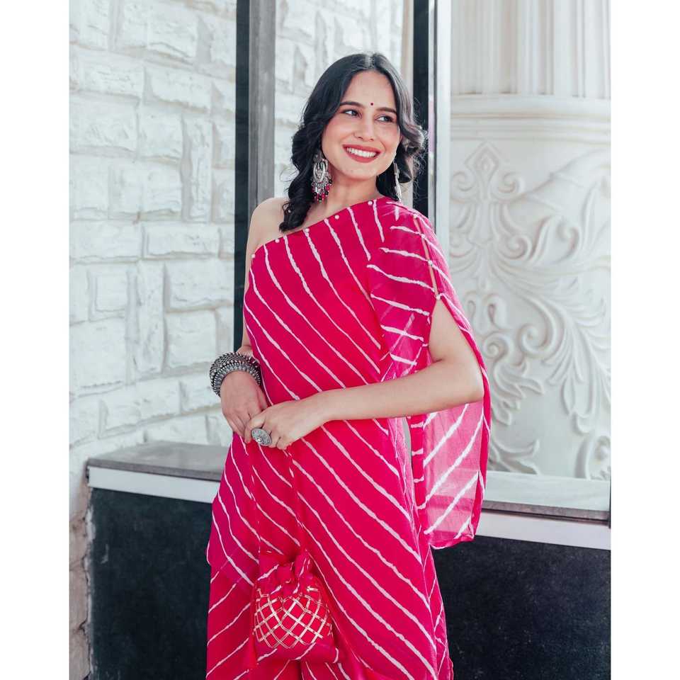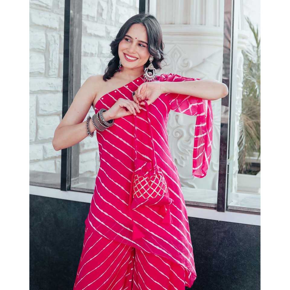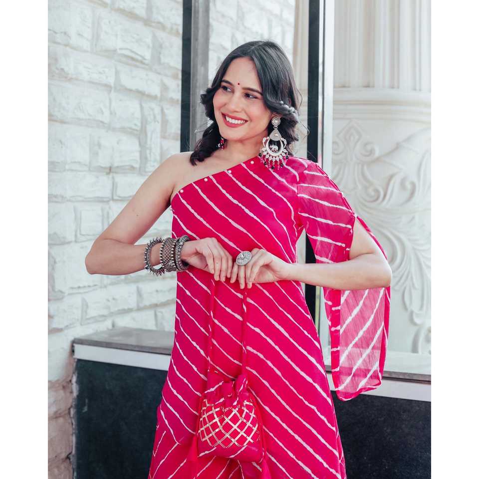ชุดคุร์ตาผ้าชีฟองสีชมพูแบบไหล่เดียวสำหรับผู้หญิง ยี่ห้อเอเลีย ไซส์ XS ไม่มีลายพิมพ์