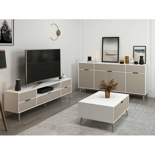 Elina Set 2 TV Stand Coffee Table Sideboard-Sandstone/White Coloured Wood Furniture