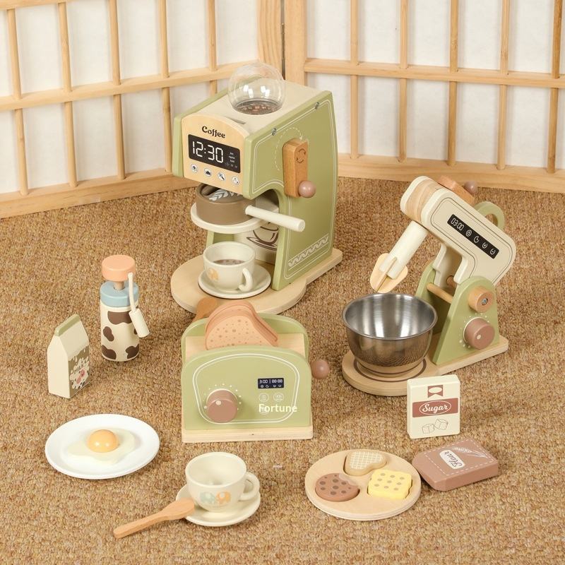 ชุดครัวไม้สำหรับเด็กก่อนวัยเรียน Elisyia พร้อมเครื่องชงกาแฟและเครื่องผสมแป้ง-อุปกรณ์ครัวของเล่นสำหรับเด็กหญิงและเด็กชาย