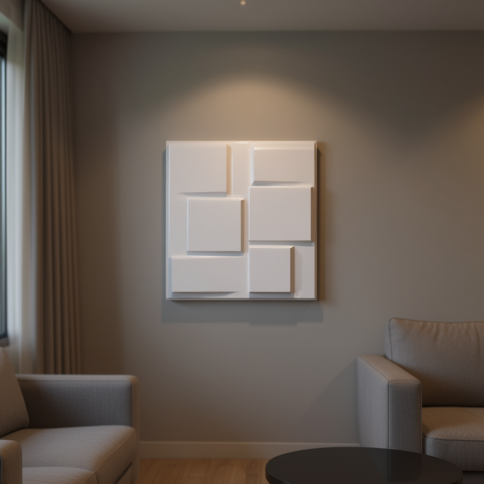 แผ่นผนังพีวีซี 3 มิติ รุ่นอีลิท ขนาด 500x500 มม. สีขาวด้าน สไตล์โมเดิร์นมินิมอล สำหรับตกแต่งภายใน ป้องกันเสียง