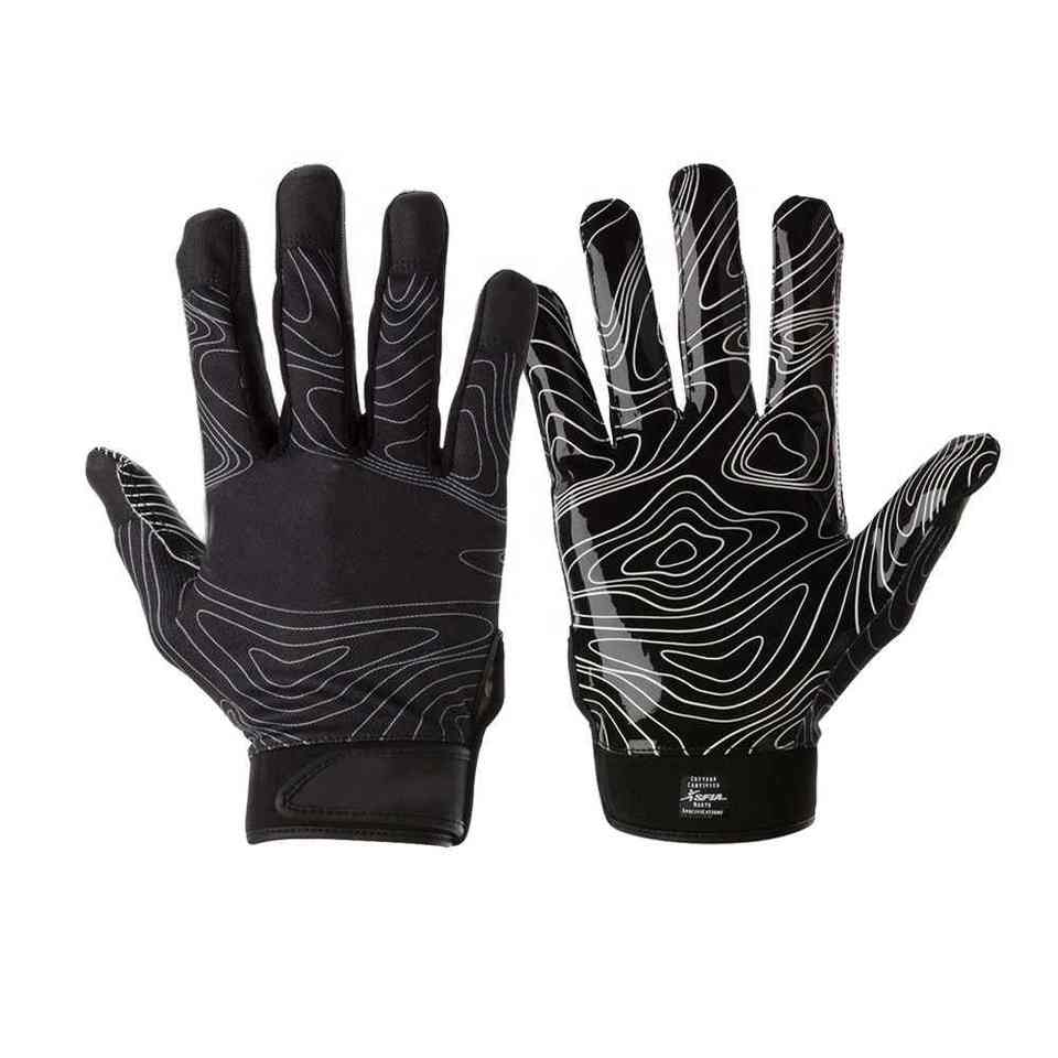 ถุงมืออเมริกันฟุตบอลสำหรับผู้ชายถุงมือเล่นกีฬากันลื่นด้ามจับสูงน้ำหนักเบามีโลโก้เฉพาะตัว