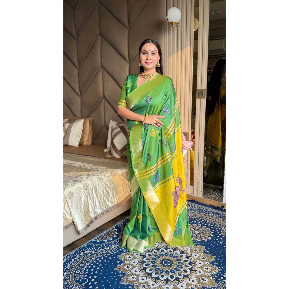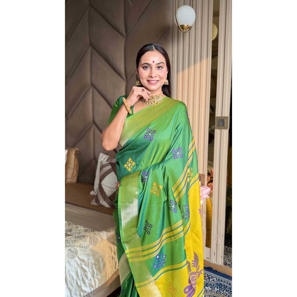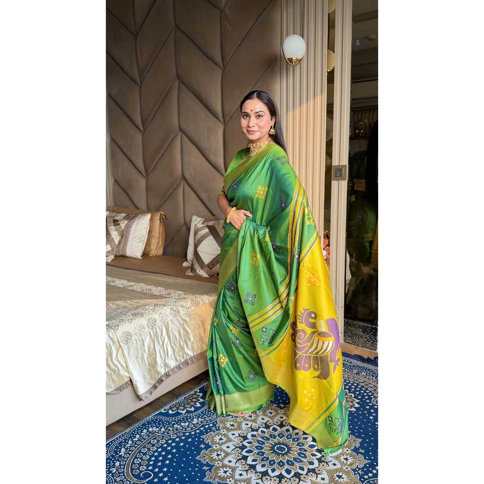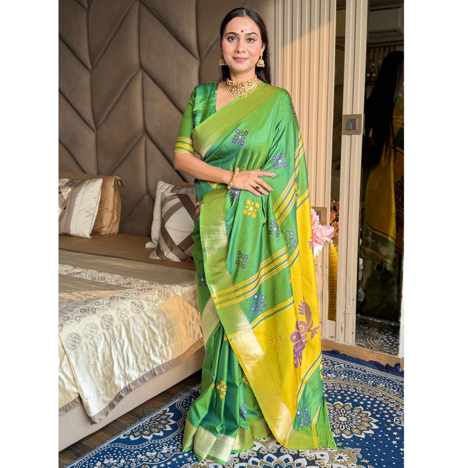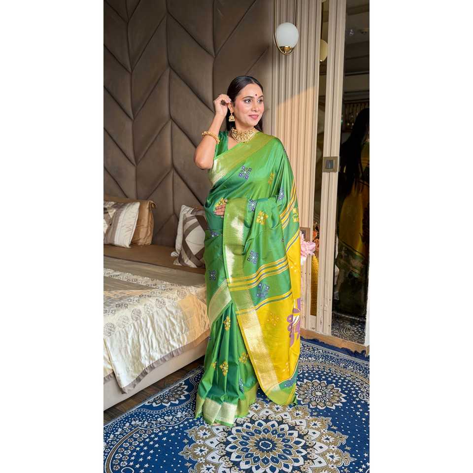 ผ้าไหมอิคคัต ปาโตลา คอลเลคชั่นเอลีท พร้อมลวดลายมีนาคารี ขอบผ้าลายยูง ประดับด้วยดิ้นทอง สำหรับงานแต่งงาน