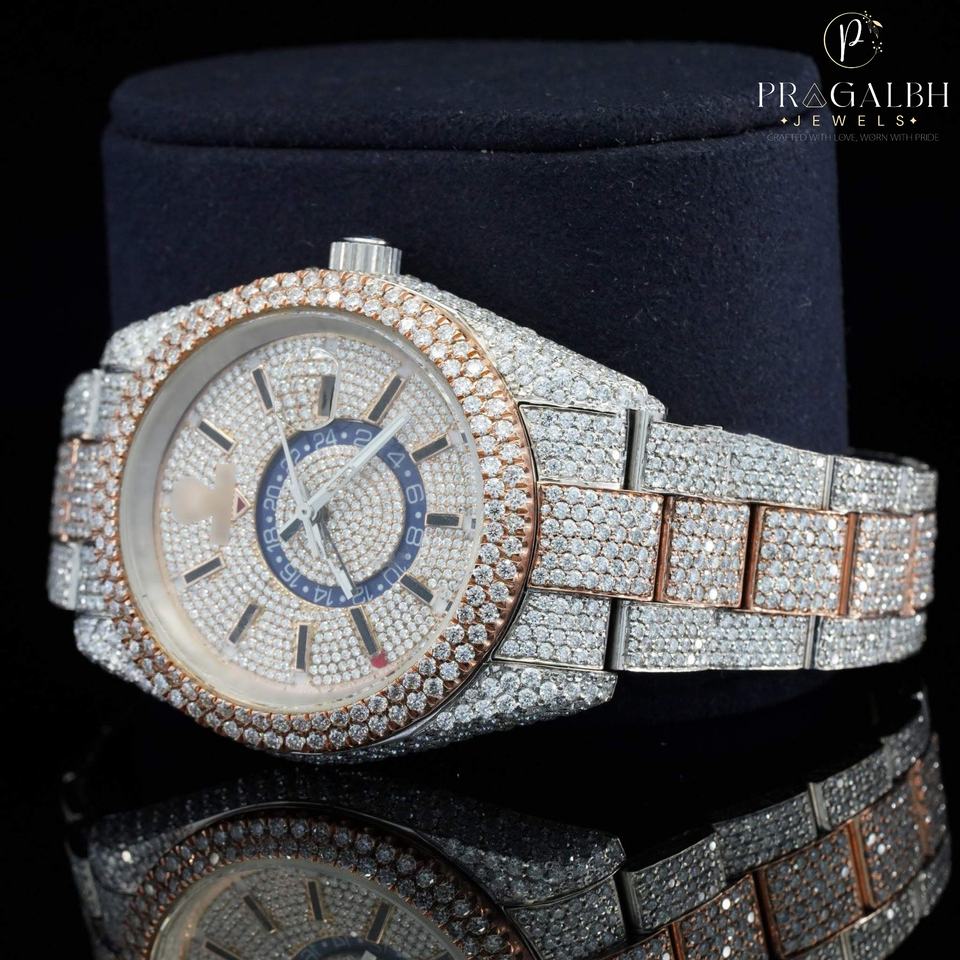 นาฬิกาเพชรโมอิสอัตโนมัติสำหรับผู้ชายรุ่น Elite สุดเก๋โชว์หน้าอกใหญ่ฮิปฮอปเครื่องประดับเพชรทำจากสแตนเลสตามสั่ง