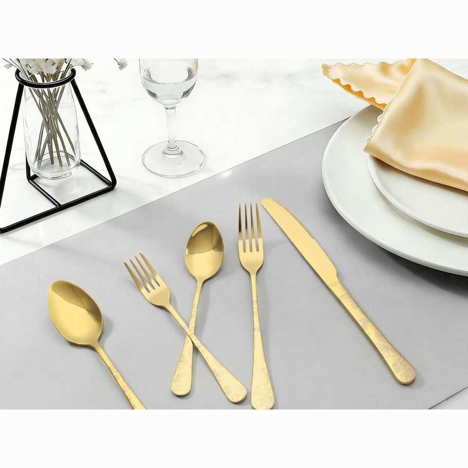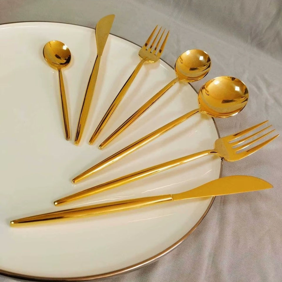 ชุดช้อนส้อมทองคำระดับพรีเมียม สำหรับงานเลี้ยงหรูหรา งานแต่งงาน ขายส่ง สำหรับผู้ค้าต่างประเทศ