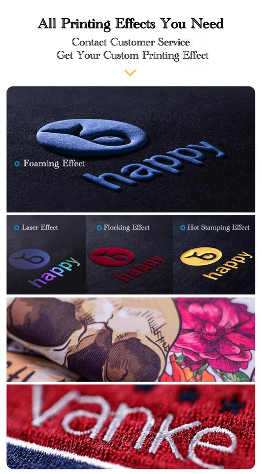 วิธีการพิมพ์:พิมพ์พัฟ, ลายนูน, การพิมพ์แบบถ่ายโอนความร้อน, การพิมพ์แบบดิจิตอล, การพิมพ์สกรีนผ้าไหม, Ready-Made เครื่องแต่งกายฉีดตรงความร้อนการพิมพ์, Ready-Made เครื่องแต่งกายโดยตรงการพิมพ์ดิจิตอล, Sublimation Transfer พิมพ์, พิมพ์ซิลิโคน, พิมพ์รอยแตก, พิมพ์แบบ HD, Customized Design