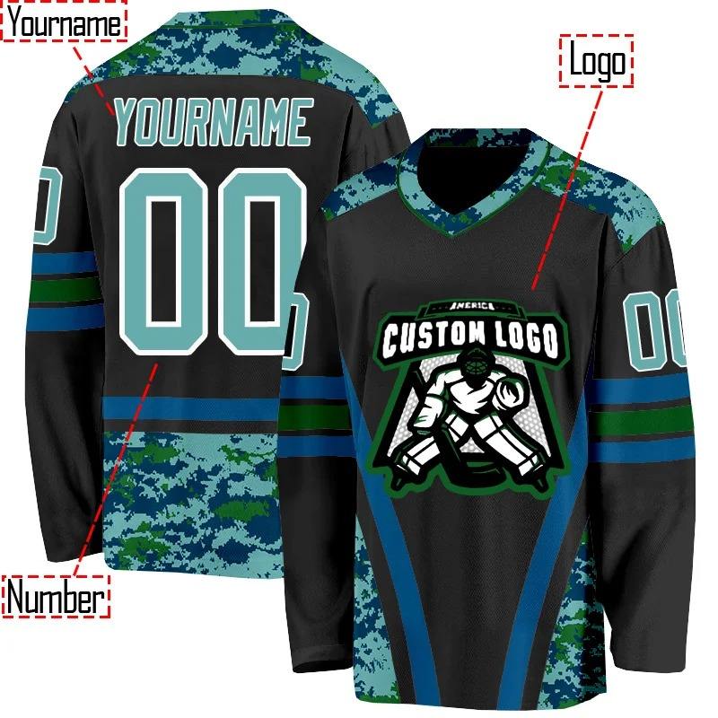 เสื้อฮอกกี้น้ำแข็งพิมพ์ลาย Elite Teal Stripe ปักชื่อและหมายเลขได้ตามสั่ง สำหรับผู้ชายและผู้หญิง ชุดแข่งขันระดับมืออาชีพ ชุดฝึกซ้อมทีม