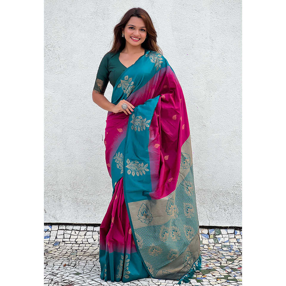 ผ้าซารีสีชมพูเนื้อนุ่มลายดอกไม้ขอบผ้าไหมทอแบบหรูหรา ผ้าทอแบบซารี ตัดเย็บด้วยด้ายซารี สำหรับฤดูหนาวและฤดูร้อน ยืดหยุ่นได้ ไม่ยับง่าย เหมาะสำหรับงานปาร์ตี้ งานแต่งงาน และชายหาด
