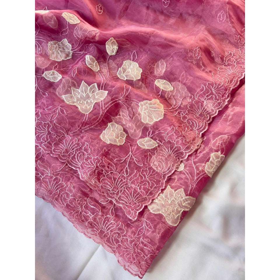 ผ้าไหมชานดาแท้จาก Elite Weaves สีชมพู พร้อมงานปักลาย น้ำหนัก 490 กรัม สำหรับแฟชั่นอินเดียและปากีสถาน