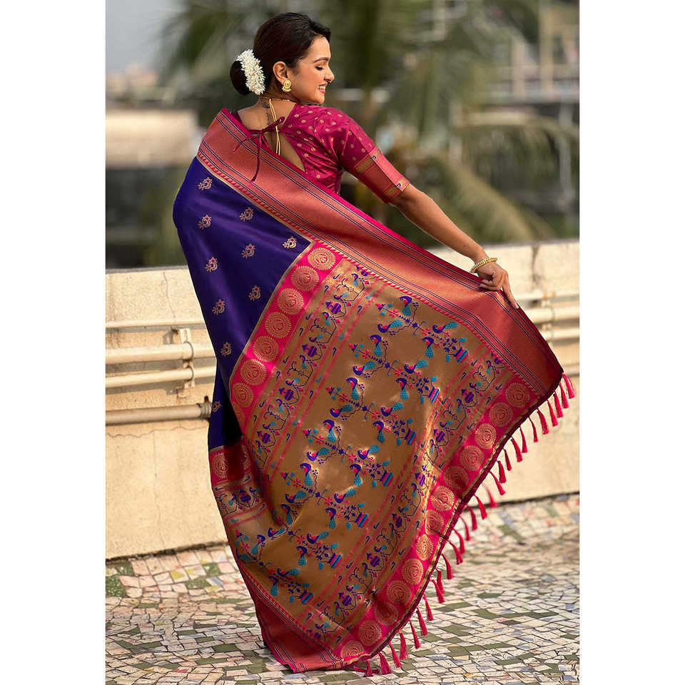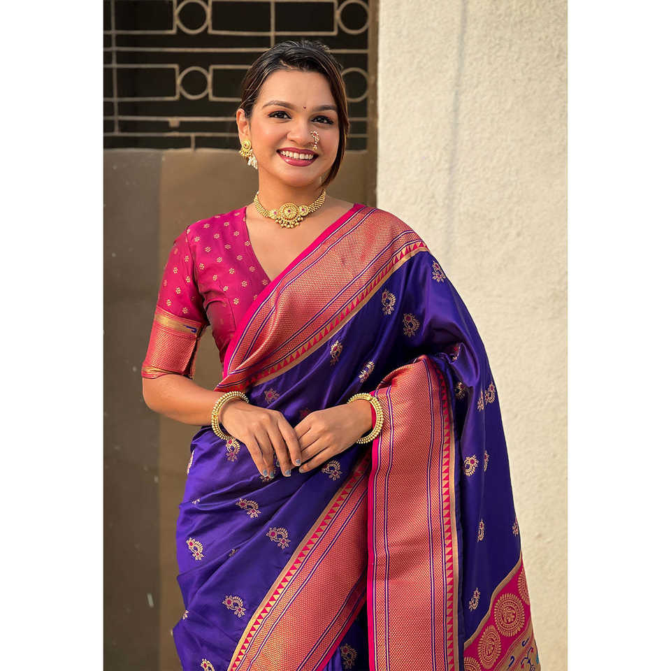 ผ้าไหมซาหรีเยโอล่า ปาธานี ทอสีม่วงวิลเลต์ แบรนด์อีลิท วีฟส์ พร้อมผ้าซับในสีตัดกัน ดีไซน์หรูหราสำหรับงานกลางคืน แห้งเร็ว ป้องกันแสงแดด ใช้ได้ทุกฤดู