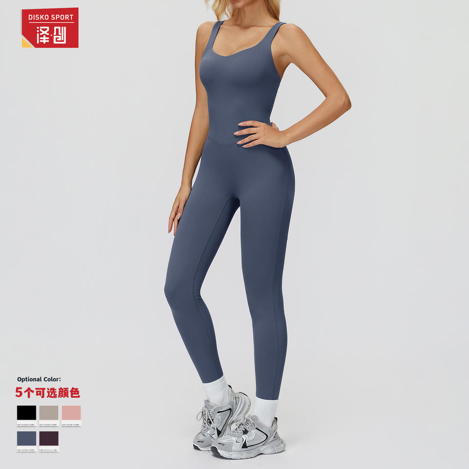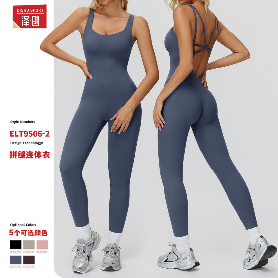 ชุดบอดี้สูทคอเหลี่ยมสีทึบสำหรับผู้หญิงชั้นสูงพร้อมเลกกิ้งเอวสูงชุดกีฬาโยคะวิ่ง ELT9506-2