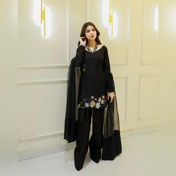 ชุดเสื้อผ้าสตรีแบบสัลวาร์ คามีซ ผ้าฝ้ายเนื้อดี พร้อมงานปักด้ายหนาทั้งตัวเสื้อและกางเกง มาพร้อมผ้าคลุมไหล่ เหมาะสำหรับใส่เที่ยวเล่นแบบสบายๆ มีจำหน่ายจำนวนมาก