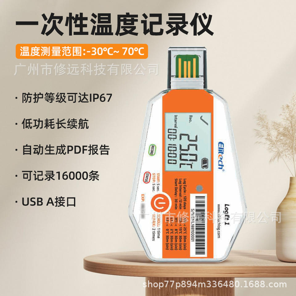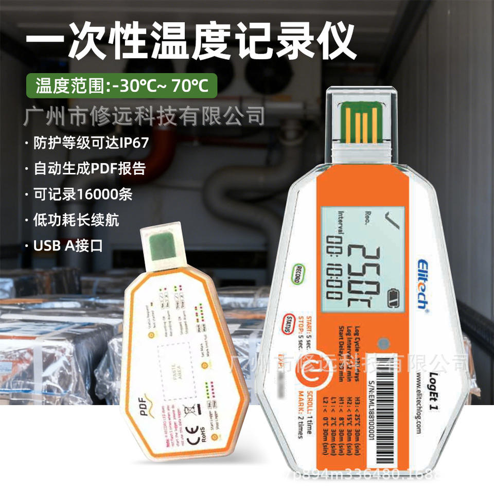 เครื่องบันทึกอุณหภูมิ Elitech LogEt1 -30 ถึง 70 องศาเซลเซียส พร้อมพอร์ต USB หน้าจอ LCD สำหรับการขนส่งแบบควบคุมอุณหภูมิ