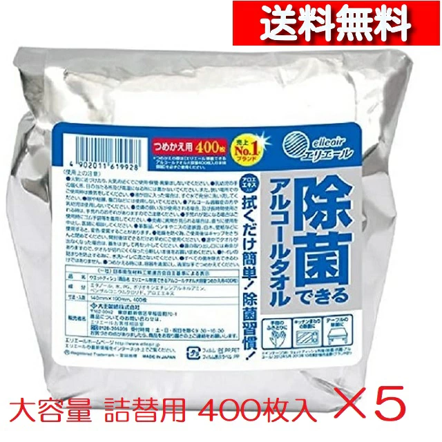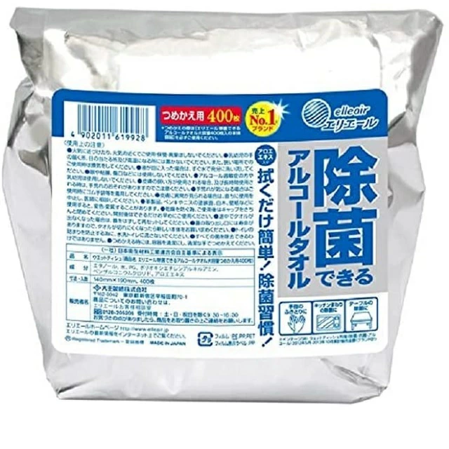 Elleair ผ้าเช็ดทำความสะอาดแอลกอฮอล์ % Disinfection75ฆ่าเชื้อและฆ่าเชื้อโรคความจุขนาดใหญ่แพ็ค400แผ่น