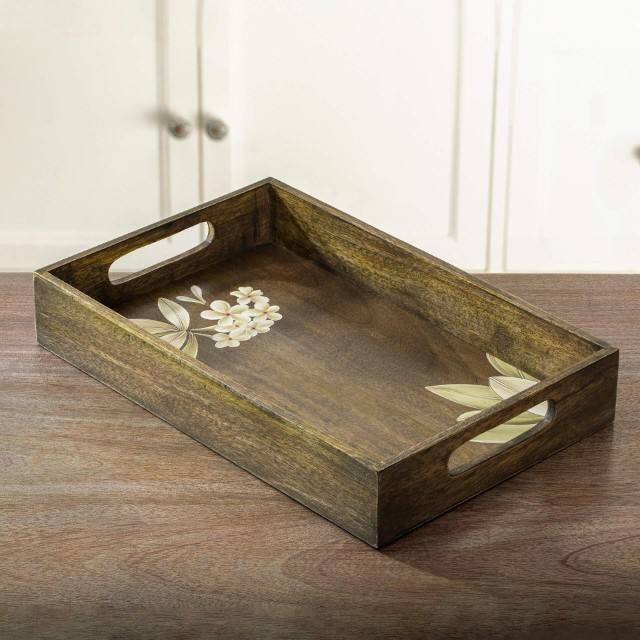Ellementry Large Rustic Rectangle Wooden Serving Tray Frangipani Decorative Tray for Breakfast Appetizers Home Decor Tableware