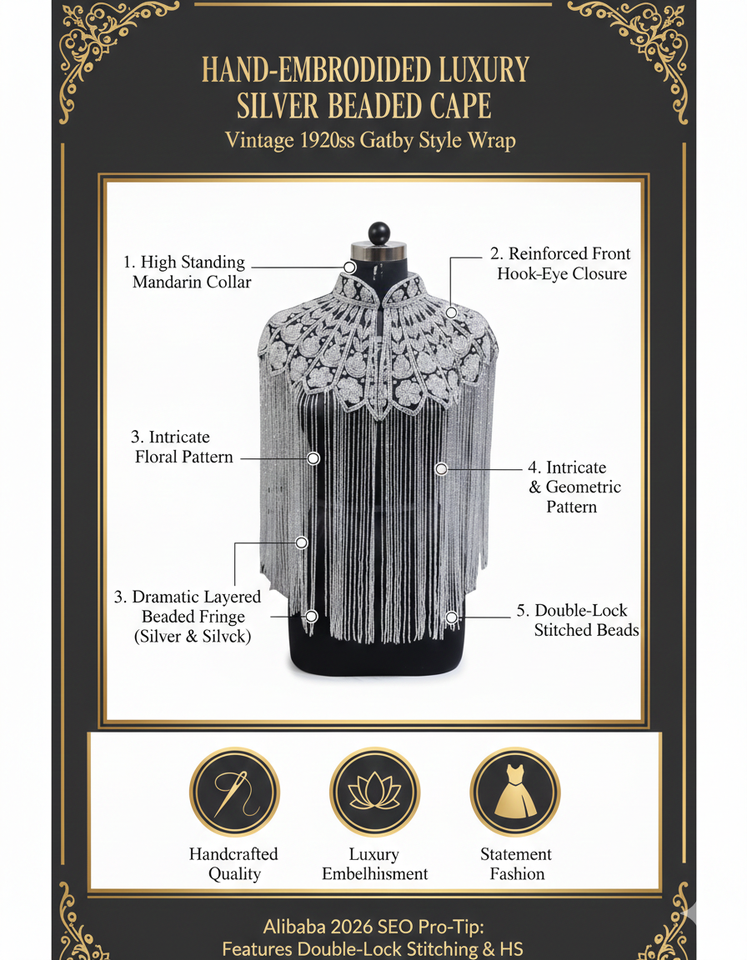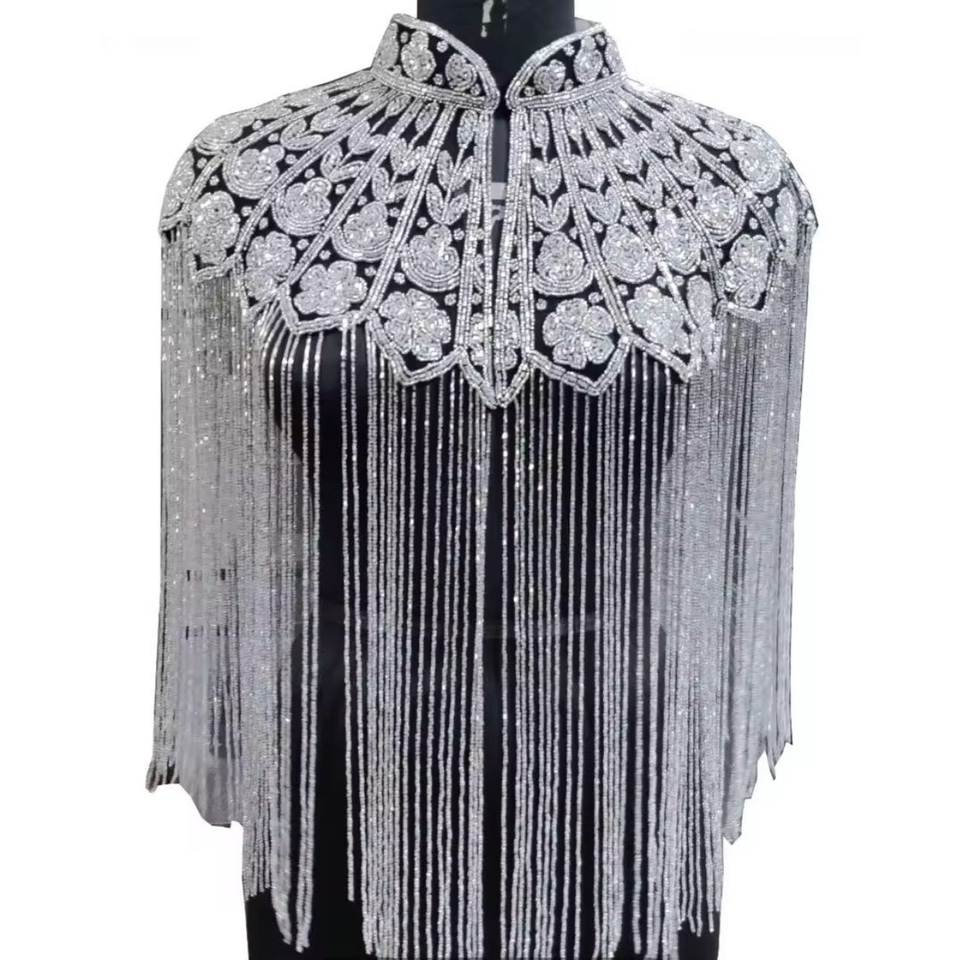 ผ้าคลุมไหล่ประดับคริสตัลและพู่ห้อยหรูหราสำหรับผู้หญิง ยี่ห้อ Ellora ทำจากไนลอนประดับด้วยลูกปัดและคริสตัลสีเงิน เหมาะสำหรับงานแต่งงาน งานเลี้ยงกลางคืน หรือใช้เป็นผ้าคลุมไหล่