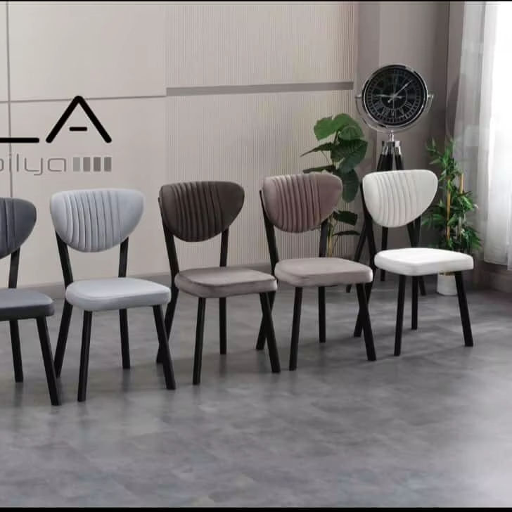 เก้าอี้ Elma พร้อมเบาะผ้านุ่มขาโลหะทาสีเหมาะสำหรับรับประทานอาหารและห้องครัวคาเฟ่แบบตุรกีที่ประหยัดพื้นที่