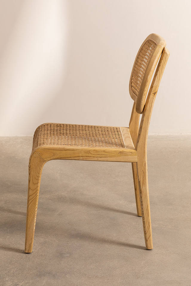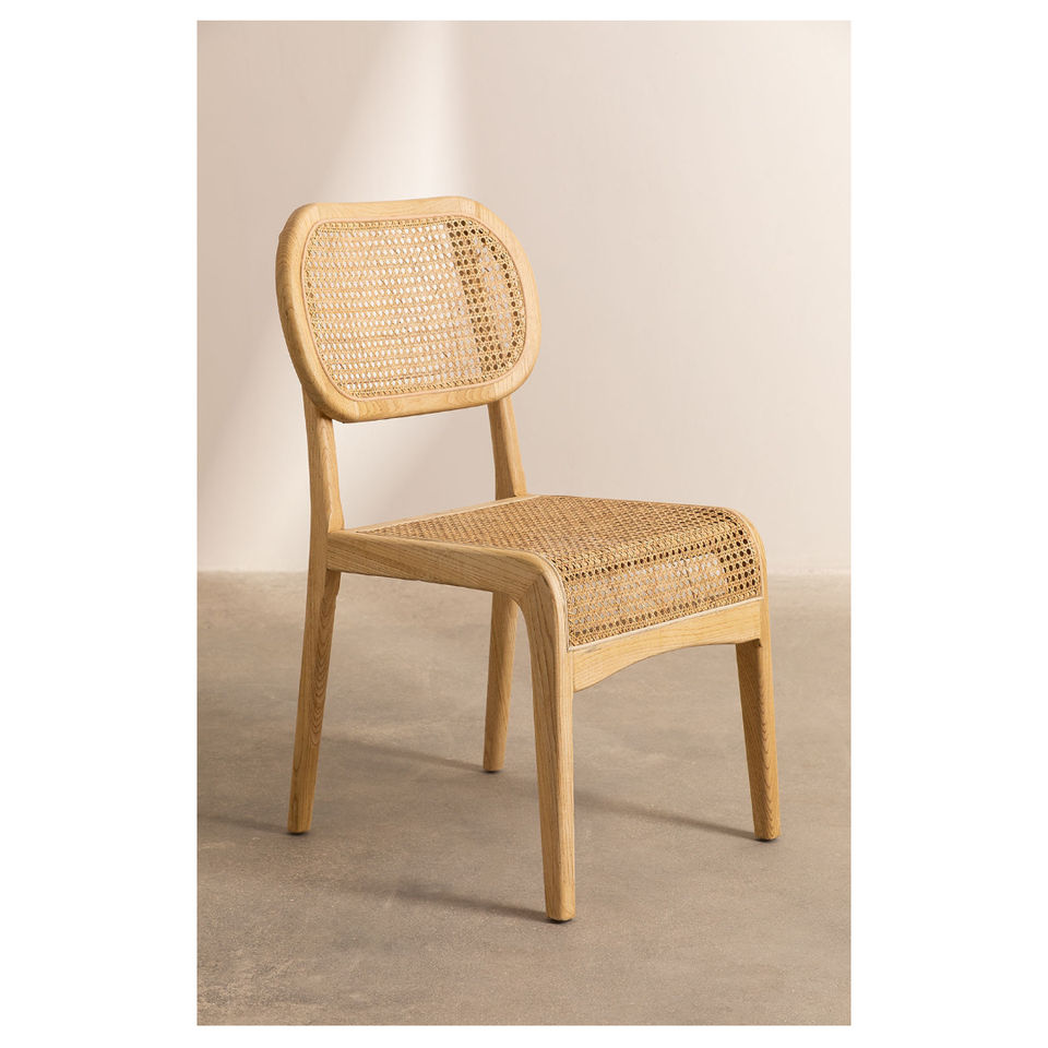 เก้าอี้ทานข้าว Elok ทำจากโครงไม้เนื้อแข็ง พร้อมหวายสาน สำหรับใช้ภายในหรือภายนอกอาคาร ตกแต่งแบบธรรมชาติ