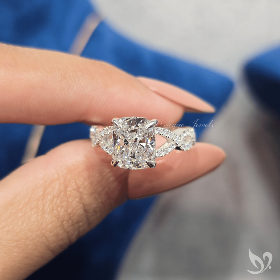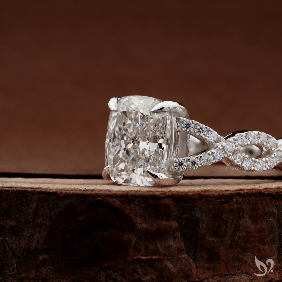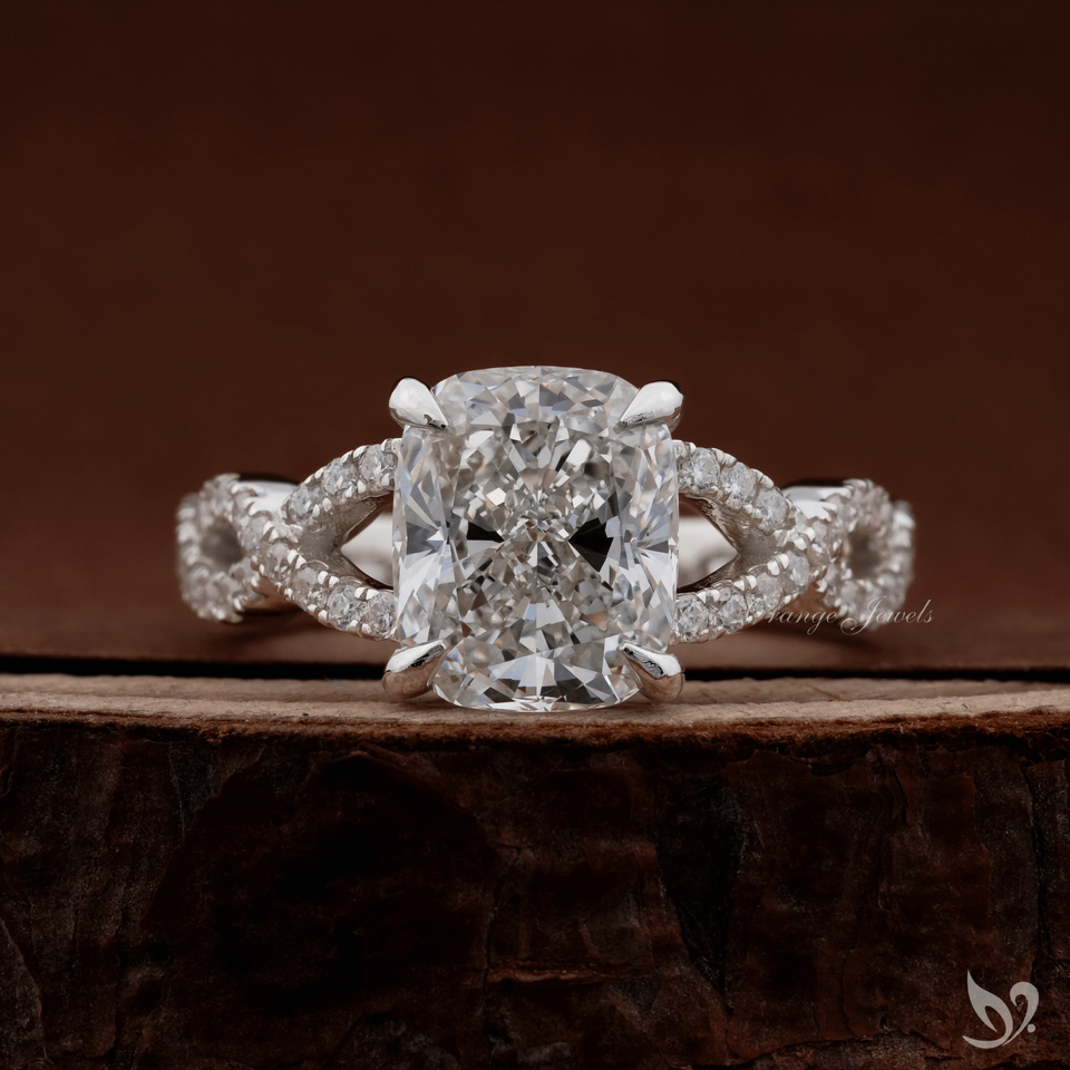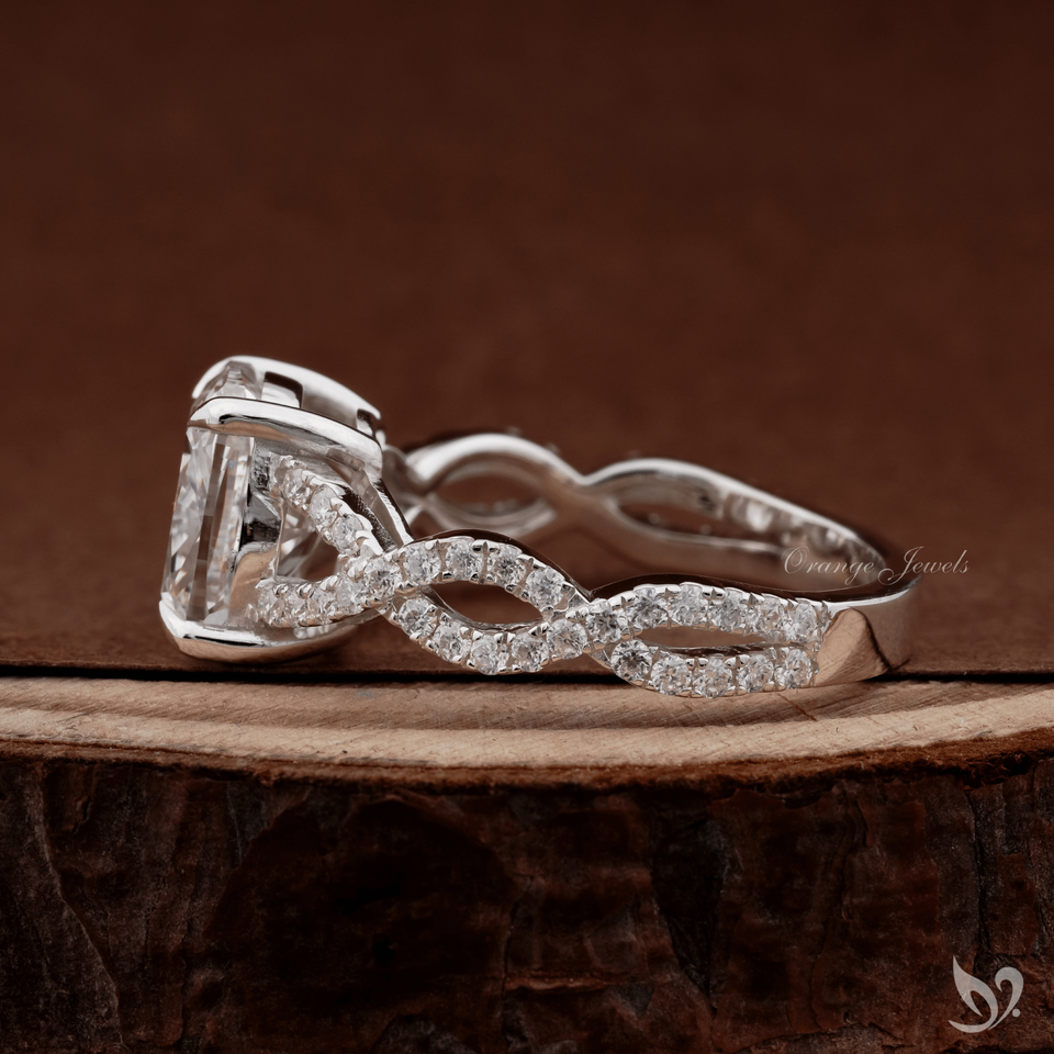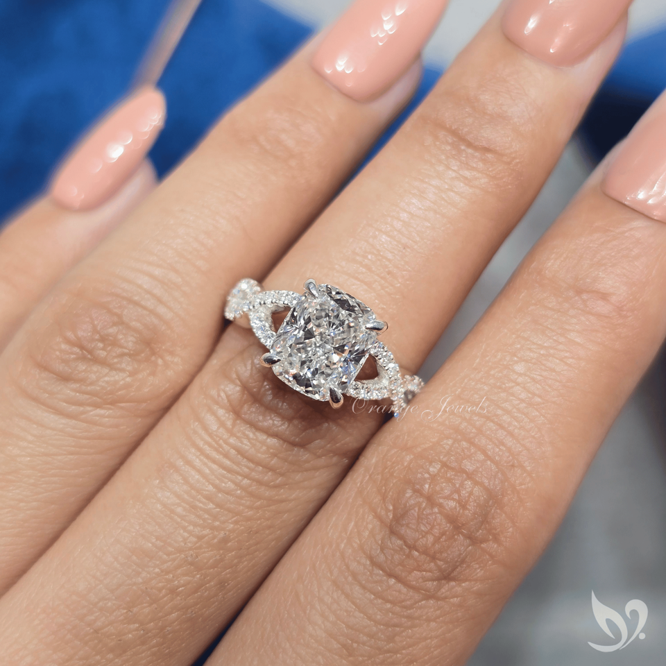 แหวนเพชรแล็บ 3 กะรัตทรงยาว ประดับบนทองคำขาว 10K พร้อมวงแหวนแบบเกลียวประดับเพชร IGI Certified