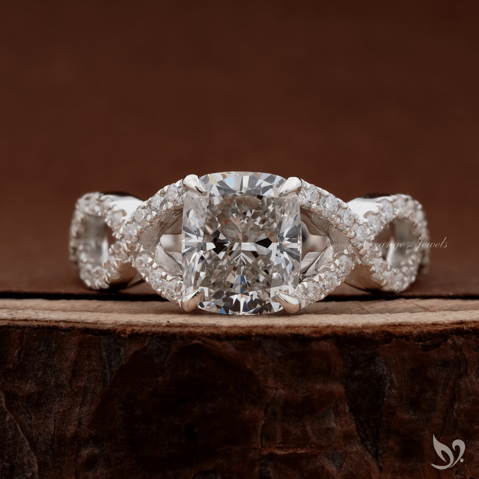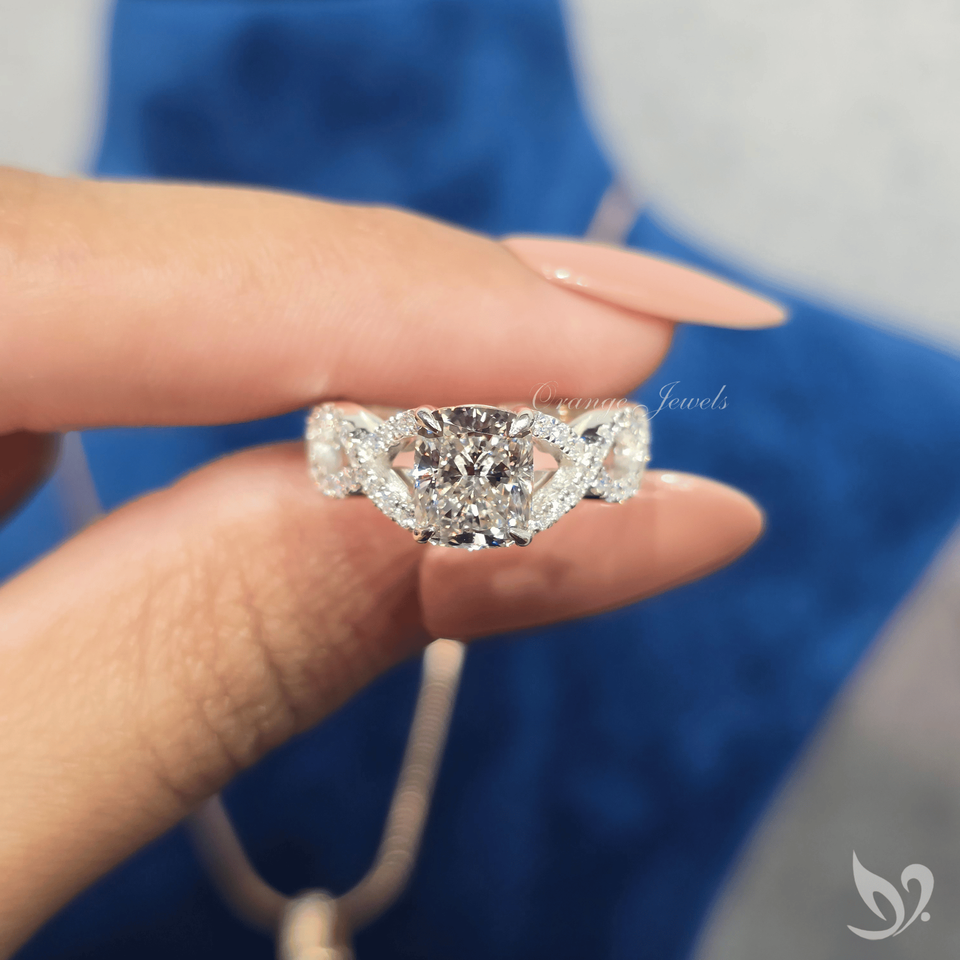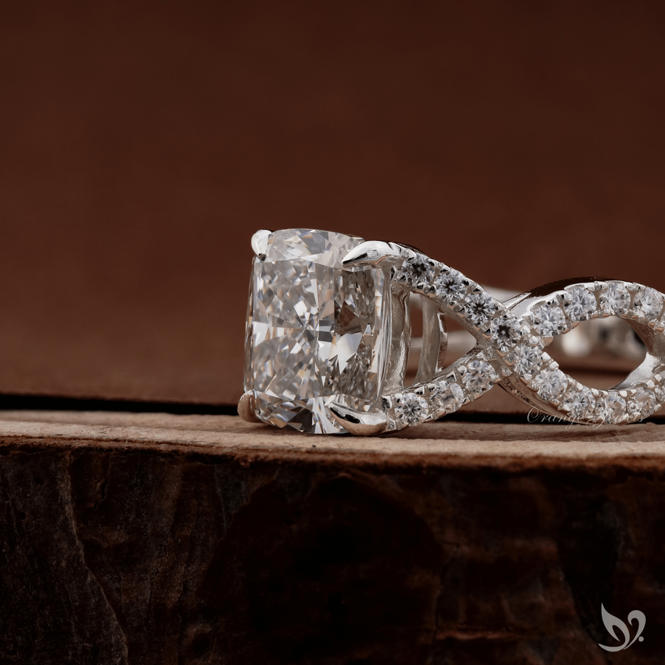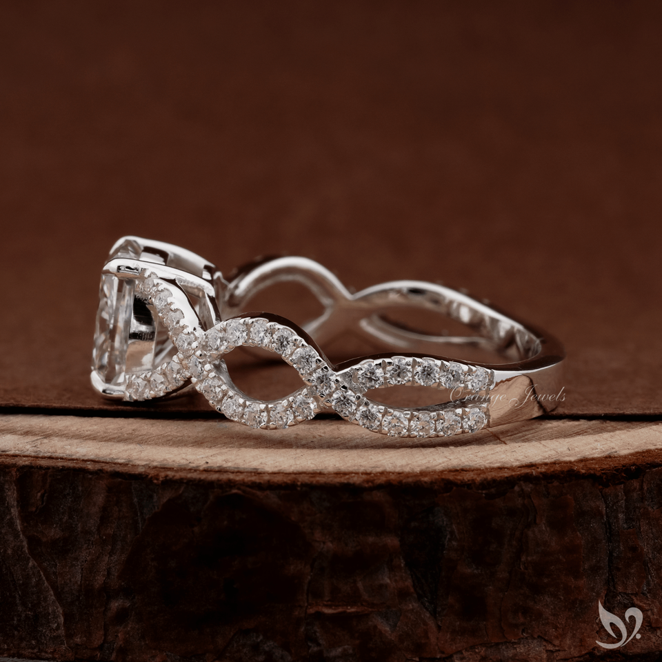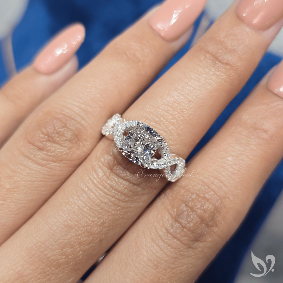 แหวนเพชรแล็บทรงยาว 2 กะรัต ทองคำขาว 10K ดีไซน์ไขว้ประดับเพชรแบบพาเว่ รับรองโดย IGI