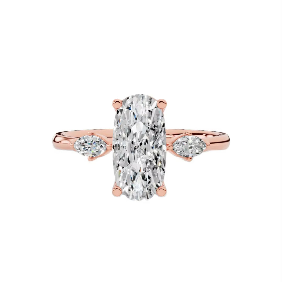 แหวนหมั้นเพชรทรงรีและทรงมาร์คีส์เพาะเลี้ยงในห้องปฏิบัติการ ทองคำขาว 18K สีเหลือง สีโรสโกลด์ ไร้สี ระดับความสะอาด VVS เครื่องประดับหรูหรา