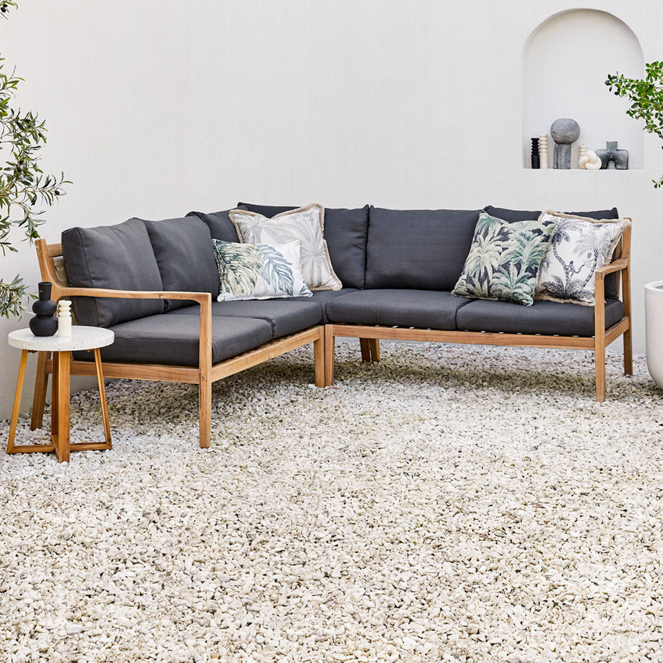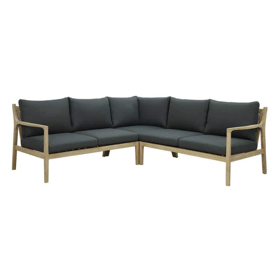 ชุดโซฟาไม้เนื้อแข็งสำหรับกลางแจ้งแบบโมดูลาร์ 5 ที่นั่ง รุ่นเอลูเลีย พร้อมเบาะสีเทา