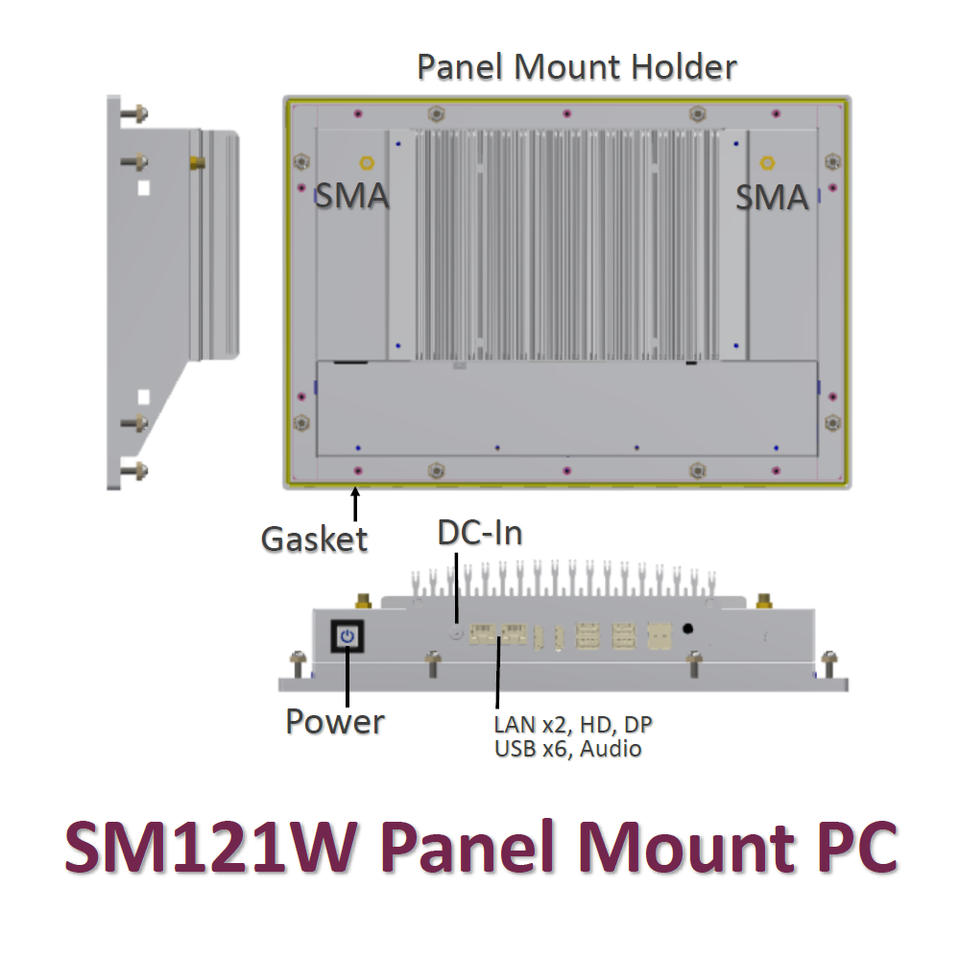 พอร์ต I/O:HD, DP, X6 USB, X1เสียง, ตัวเลือก DC-in: COM, GPIO, พอร์ต CAN