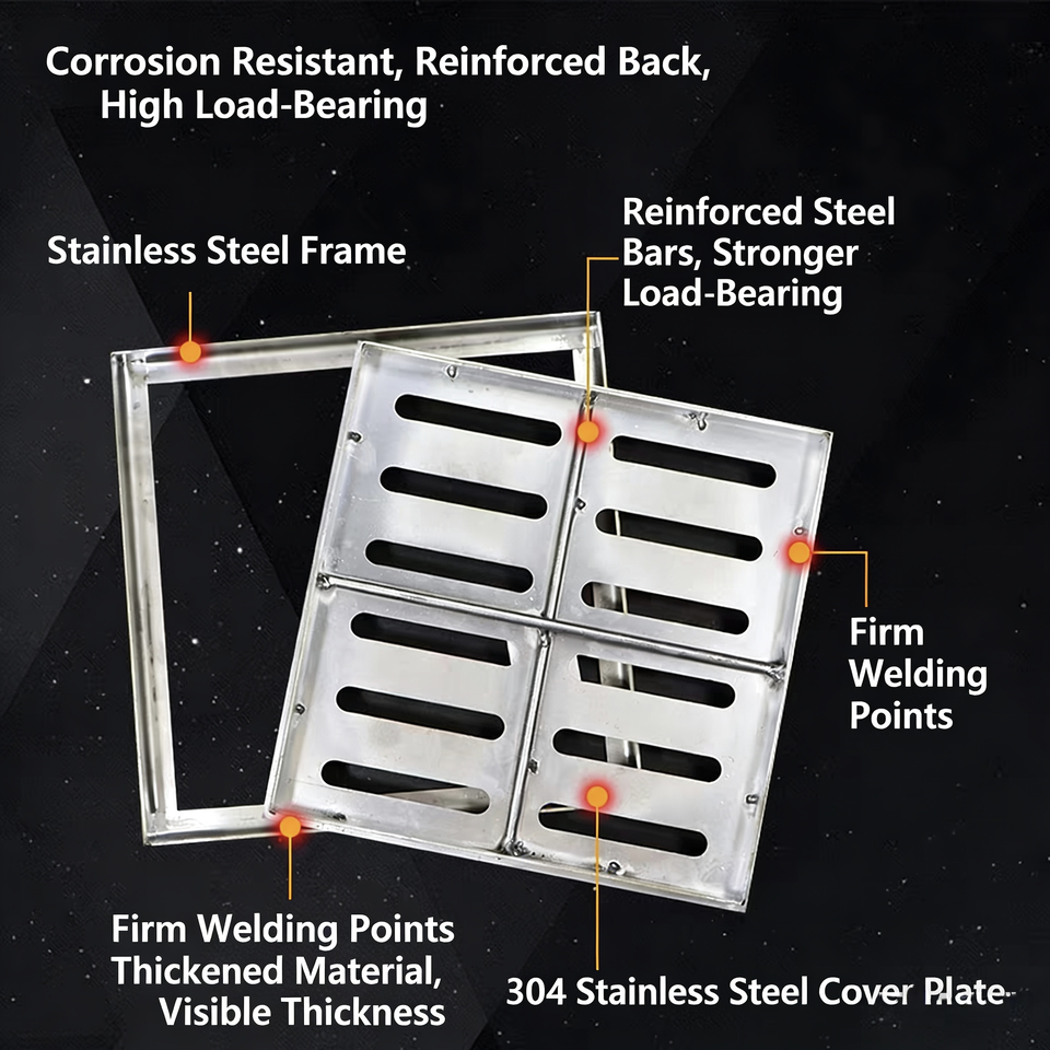 ตะแกรงระบายน้ำฝนสแตนเลสแบบฝังชนิด 304, ฝาปิดท่อระบายน้ำแบบซ่อนสำหรับพื้นลานกว้าง