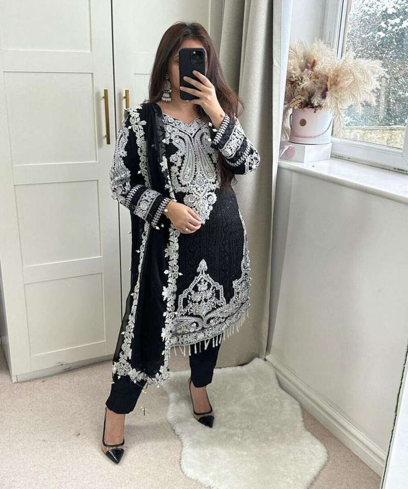 ชุดซาลาแวร์ตกแต่งสำหรับสวมใส่ในชีวิตประจำวันพร้อมด้วยงาน zari ที่ซับซ้อนและการตกแต่งกระจกและชายกระโปรงจีบสำหรับสำนักงาน