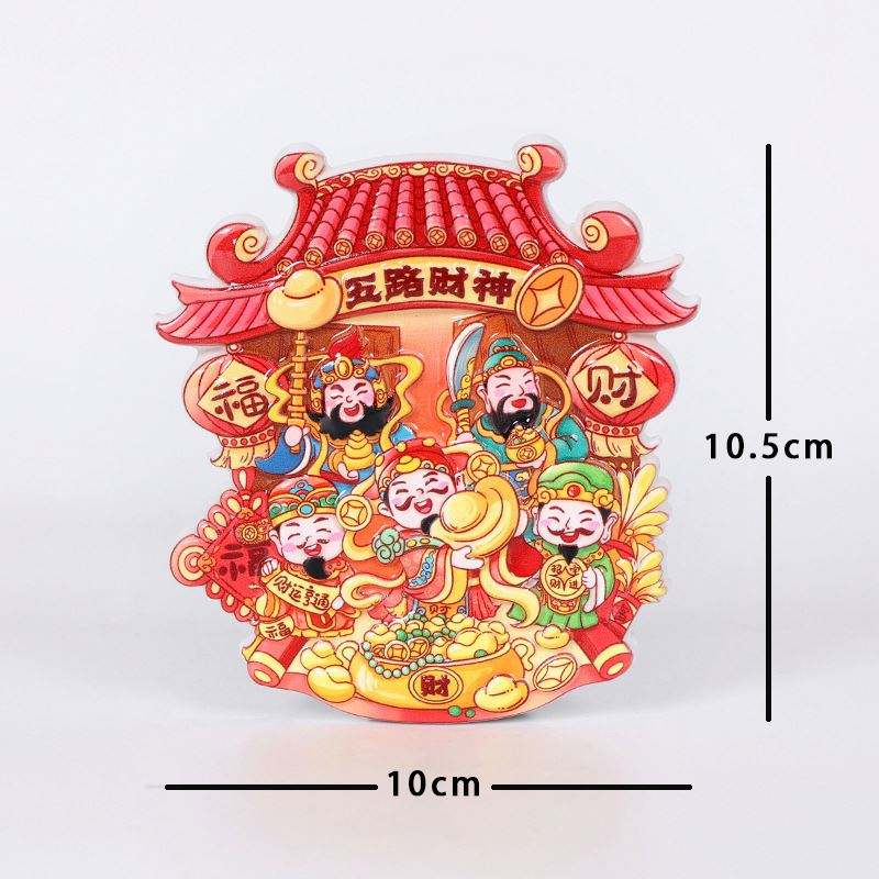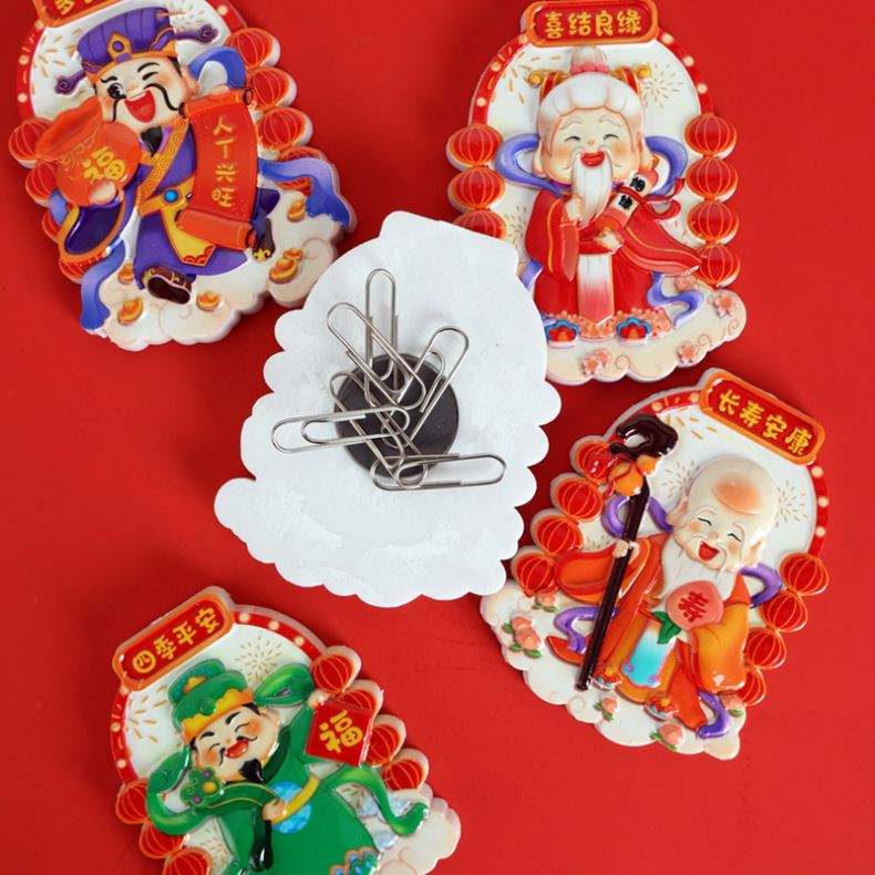 Embossed 3D Chinese Cartoon Five Blessings Fairy Trendy God Wealth Refrigerator Magnet National Cultural Creative Resin Fridge