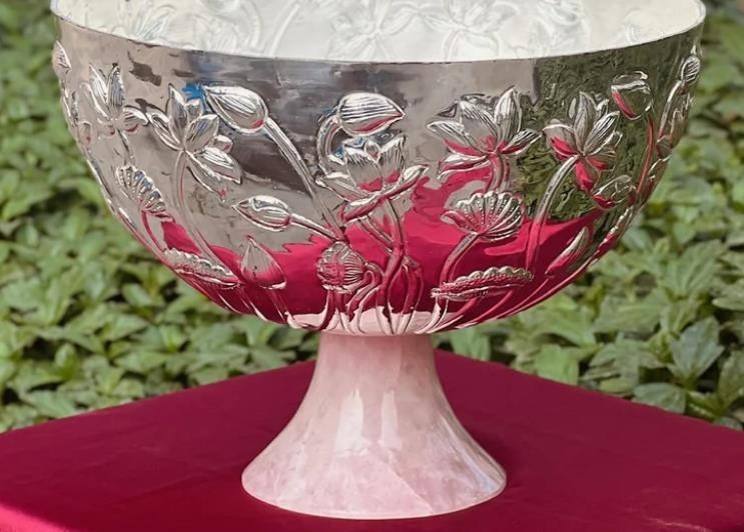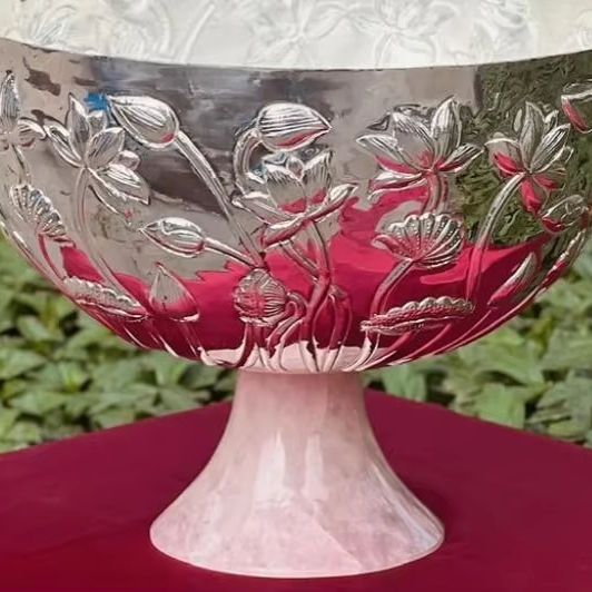 Embossed Brass Silver Color Serving Bowl with Resin Base for Home Hotel And Restaurant Table top Dinnerware Serving Fruits Bowls