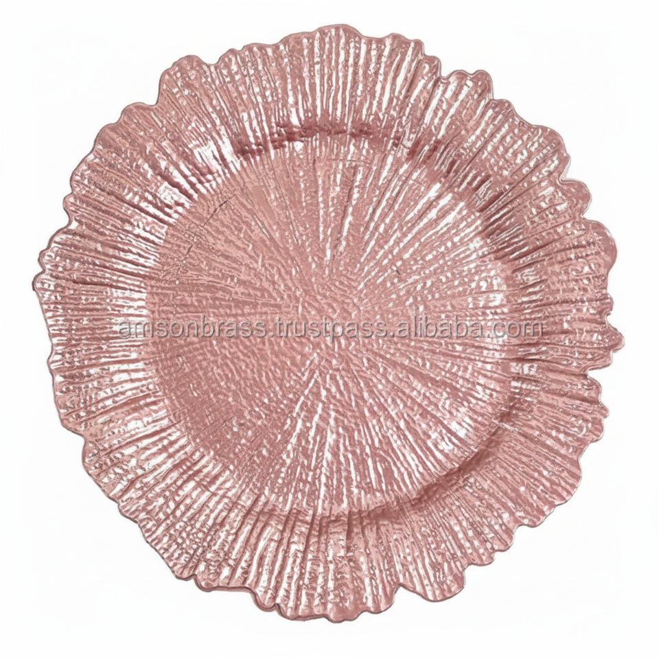 การออกแบบนูนกุหลาบทองเสร็จสิ้นการออกแบบดอกไม้รอบรูปร่างชาร์จจานรับประทานอาหารตกแต่งและแผ่น