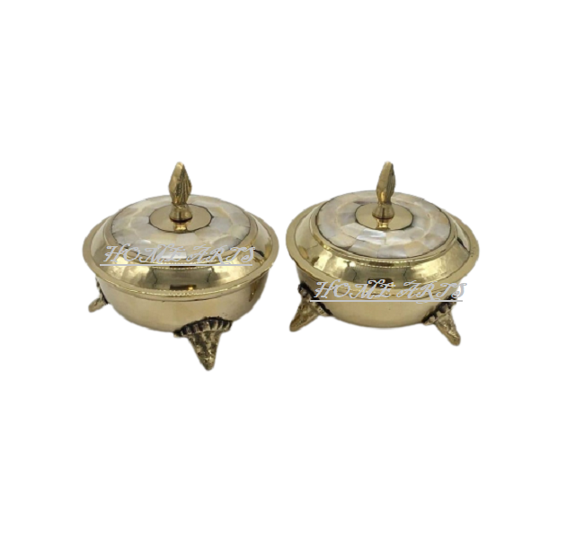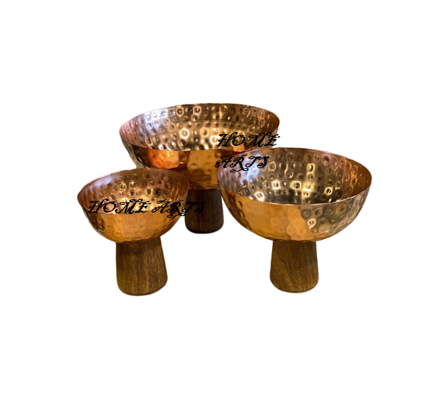 ชุดชามทรงน๊อตแบบกลมดีไซน์นูนชุดชามทองเหลืองสีทอง3ชิ้น