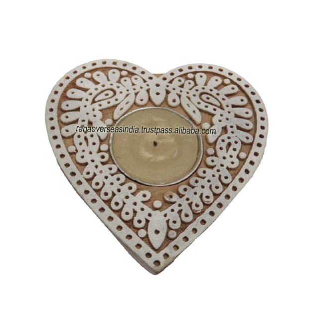 Embossed Design Wooden Tea Light Holder in Heart Shape for Party Wedding and Events Table Decor