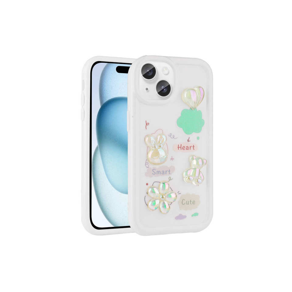 เคสซิลิโคนมันวาวลายนูนสำหรับ iPhone 15 14 PLUS 13 PRO MAX ที่มีสไตล์และโลโก้ของ INS-สีขาว